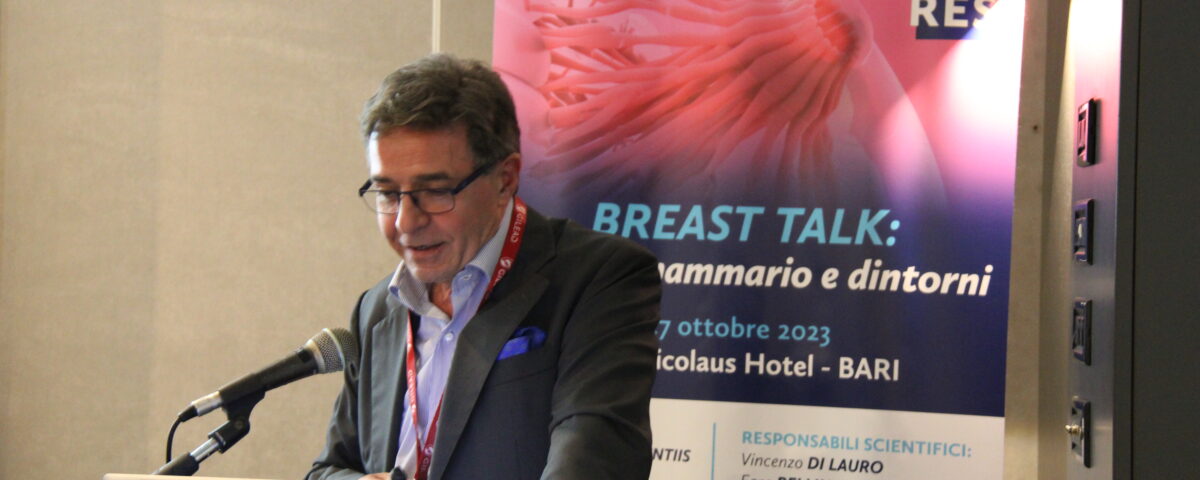 Francesco Giotta, presidente scientifico (insieme al dottore Michelino De Laurentiis dell’Istituto Nazionale Tumori “Fondazione Pascale” di Napoli) dell’Evento e medico oncologo presso l’I.R.C.C.S. “Giovanni Paolo II” di Bari, ha ricordato come l’incontro – che si è tenuto venerdì 27 – sia stato volutamente inserito all’interno dell’ottobre rosa, ovvero il mese dedicato alla prevenzione del tumore al seno. «Molti interventi dei colleghi hanno visto un aggiornamento in tempo reale di quanto detto durante il congresso della Società Europea di Oncologia Medica che si è tenuto a Madrid dal 20 al 24 ottobre”. A proposito di progressi della medicina, ha aggiunto: “Per fortuna, ad oggi le innovazioni scientifiche hanno permesso ad alcune patologie (come, ad esempio, il cancro del seno triplo negativo) un tempo orfane di terapia, di avere un panorama di trattamenti che non rendono più la patologia stessa un problema per gli oncologi medici».
